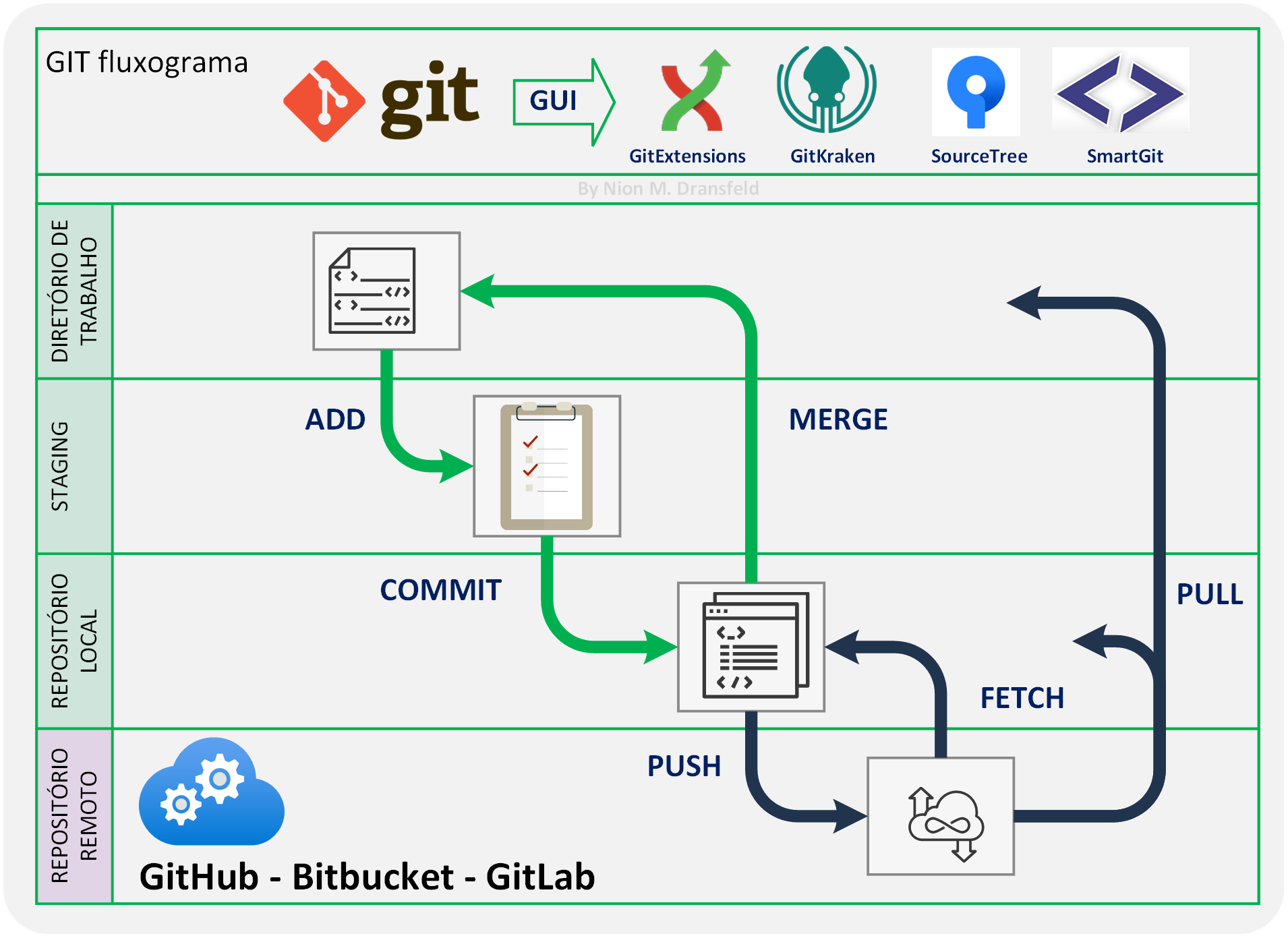 Além disso, o Git possui uma ampla gama de recursos, como ramificações (branches) para o desenvolvimento paralelo, fusão (merge) das ramificações, resolução de conflitos e integração com serviços de hospedagem como o GitHub, Bitbucket e GitLab (Fig. 01).